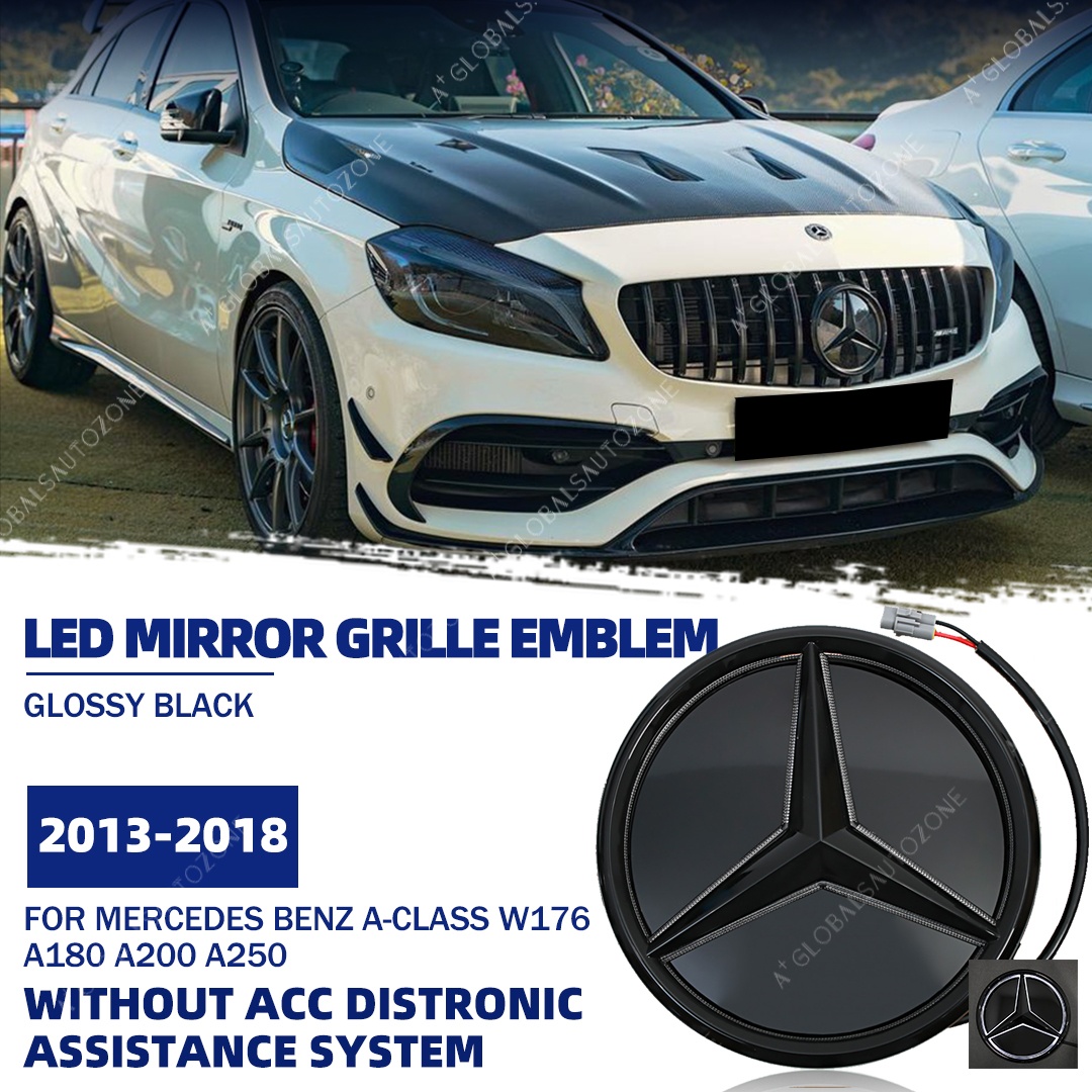 Glossy Black Front Bumper LED Grille Lights Mirror Emblems For Mercedes Benz A-Class W176 2013-2018 A180 A200 A250 Shiny Black Illuminated Benz Grilles Mirror Star Logo Badge