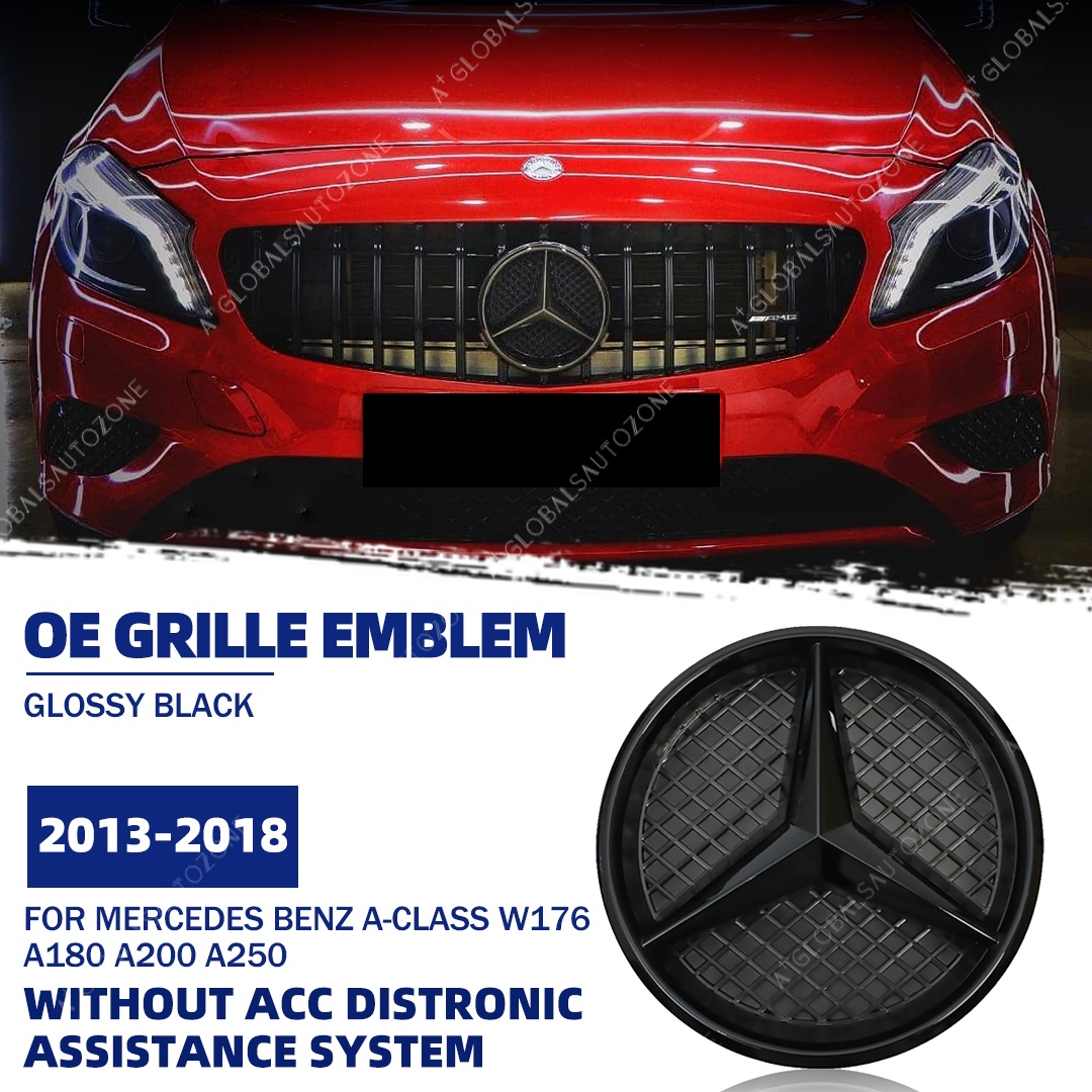Glossy Black Front OE Grille Emblem For Mercedes Benz A-Class W176 2013-2018 A180 A200 A250 Shiny Black Benz Grilles Star Logo Front Bumper Grille Badge