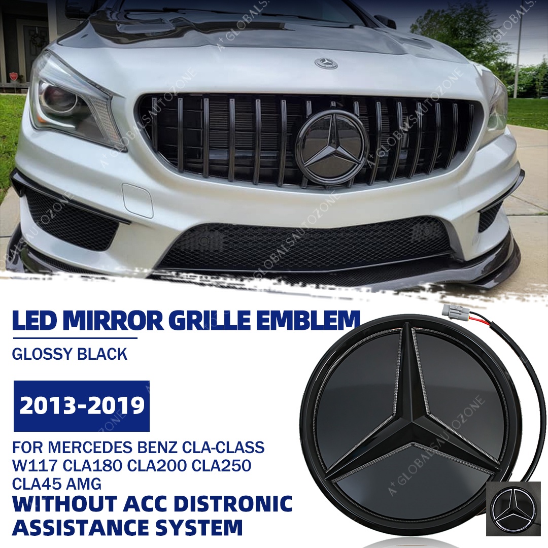 Glossy Black Front Bumper LED Grille Lights Mirror Emblems For Mercedes Benz CLA-Class W117 2013-2019 CLA180 CLA200 CLA250 CLA45 AMG Shiny Black Illuminated Benz Grilles Mirror Star Logo Badge