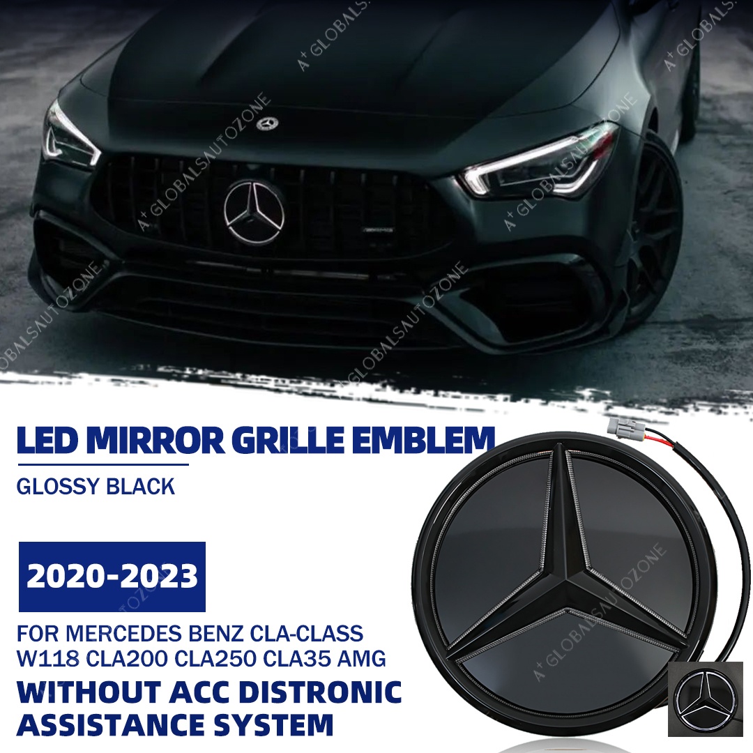 Glossy Black Front Bumper LED Grille Lights Mirror Emblems For Mercedes Benz CLA-Class W118 2020-2023 CLA200 CLA250 CLA35 AMG Shiny Black Illuminated Benz Grilles Mirror Star Logo Badge