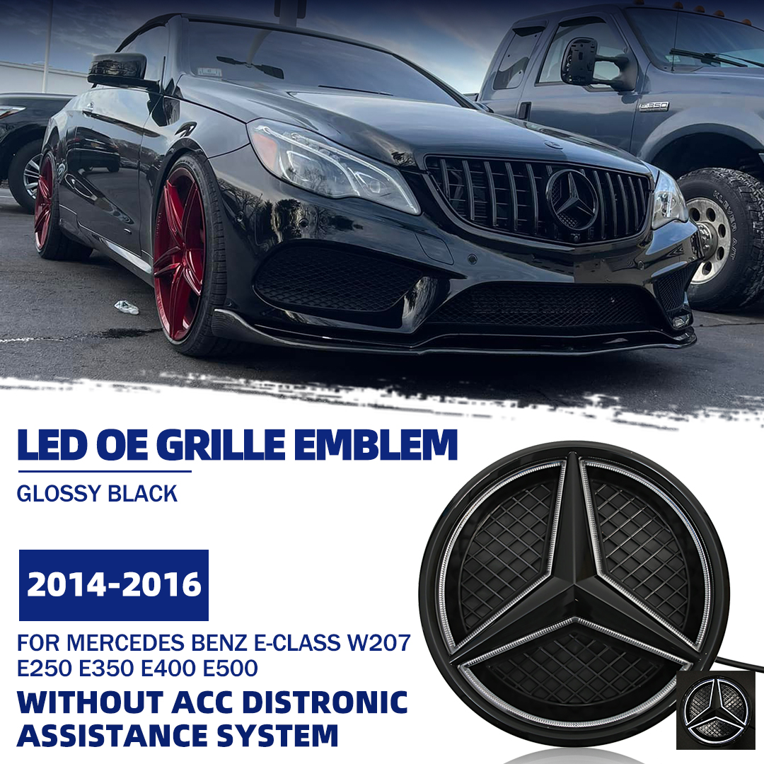Glossy Black Front Bumper LED Grille Lights Emblems For Mercedes Benz E-Class W207 2014-2016 E250 E350 E400 E500 Shiny Black Illuminated Benz Grilles Star Logo Badge