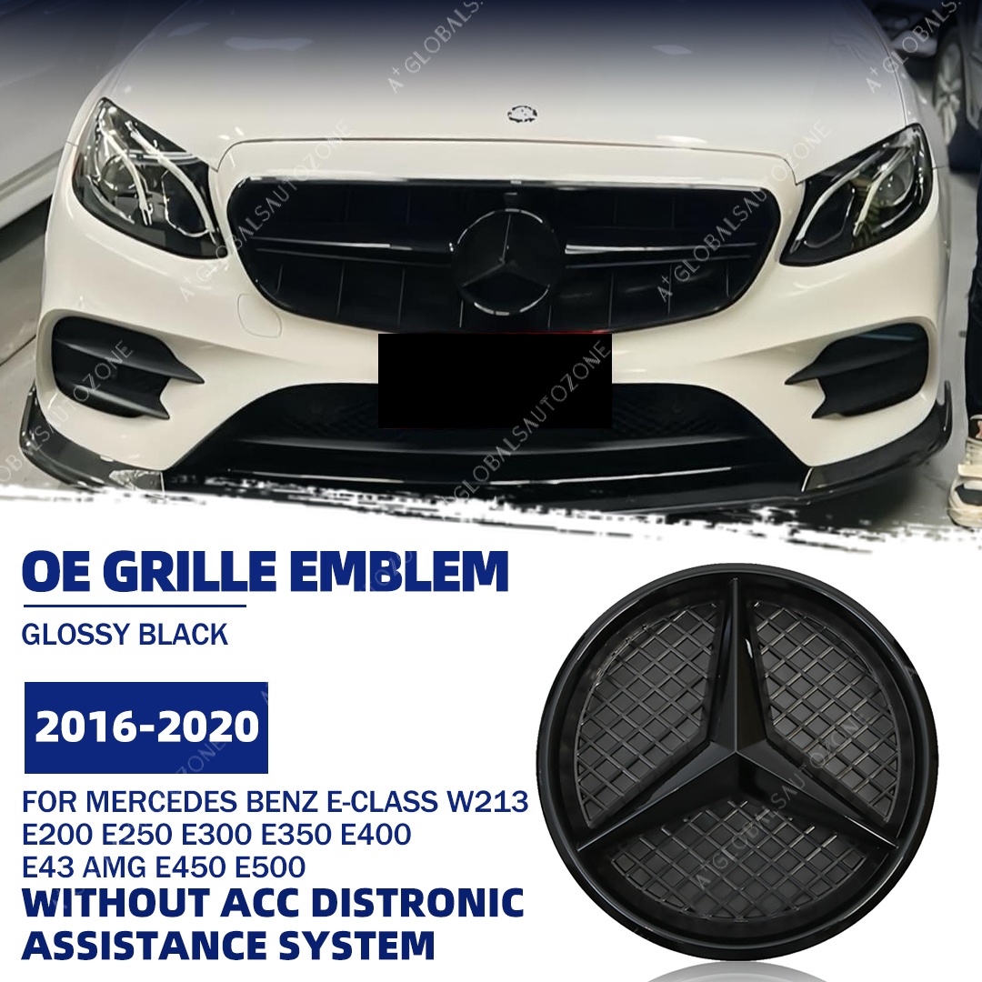 Glossy Black Front Racing Grille Emblems For Mercedes Benz E-Class W213 2016-2020 E200 E250 E300 E350 E400 E43 AMG E450 E500 Shiny Black Benz Grilles Star Logo Badge