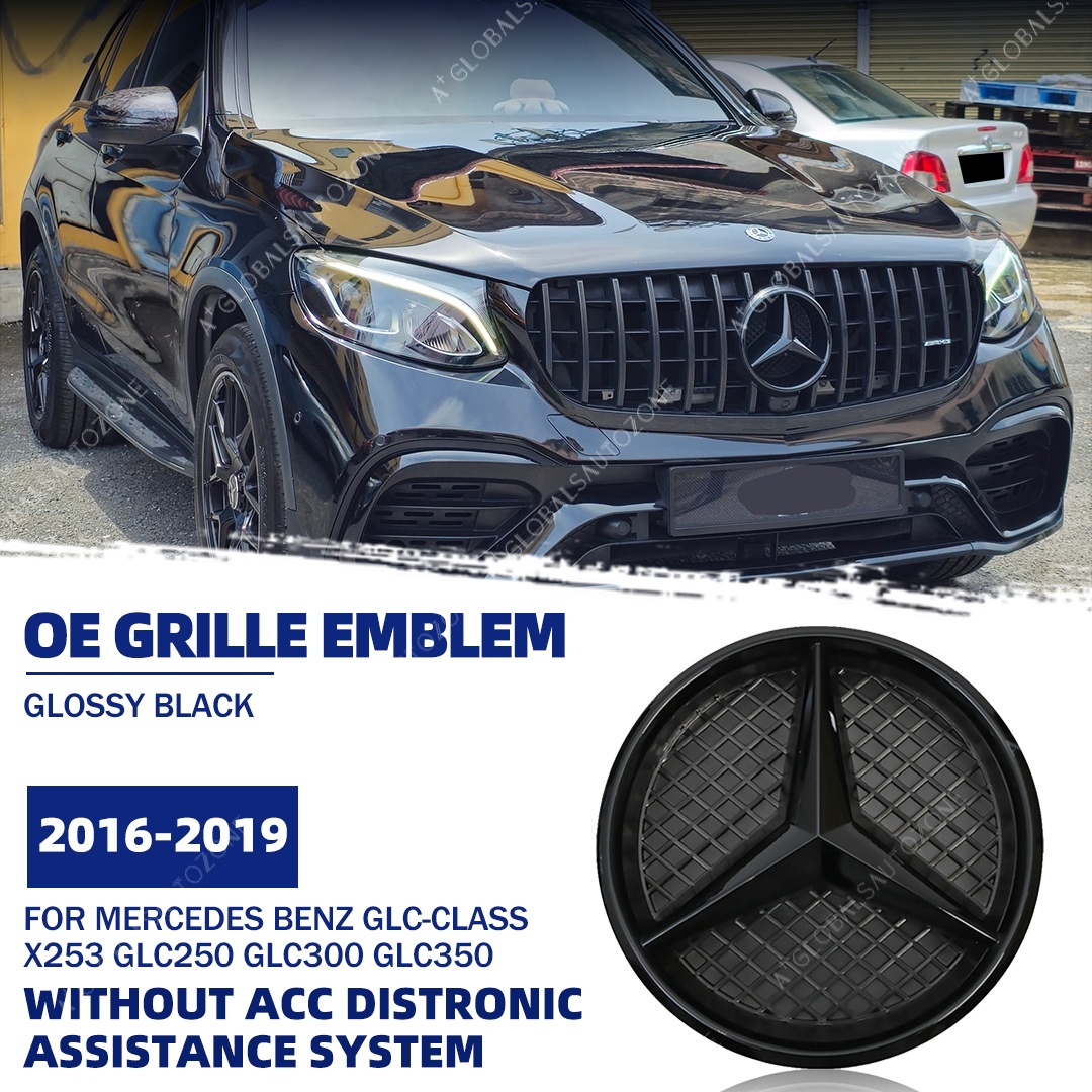 Glossy Black Front Racing Grille Emblems For Mercedes Benz GLC-Class X253 2016-2019 GLC250 GLC300 GLC350 Shiny Black Benz Grilles Star Logo Badge