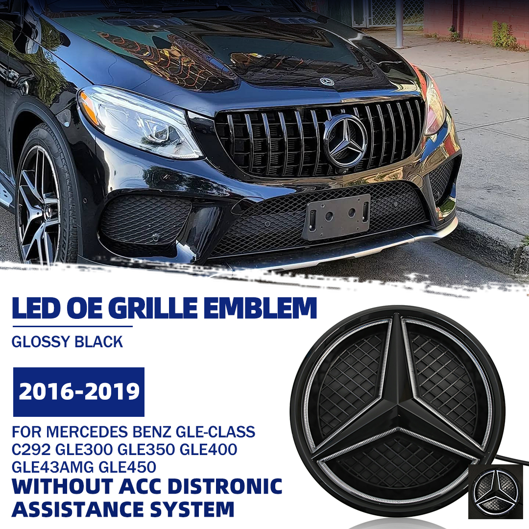 Glossy Black Front Bumper LED Grille Lights Emblems For Mercedes Benz GLE-Class C292 2016-2019 GLE300 GLE350 GLE400 GLE43AMG GLE450 Shiny Black Illuminated Benz Grilles Star Logo Badge