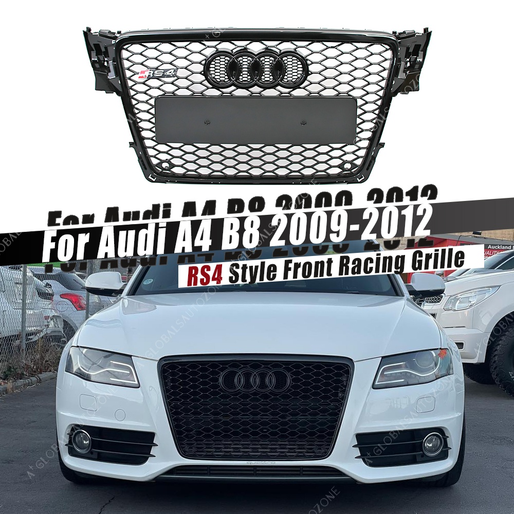 Glossy Black Honeycomb Sport Mesh RS4 Style Hex Front Bumer Grille Grill Black For Audi A4/S4 2009-2012 B8 8T
