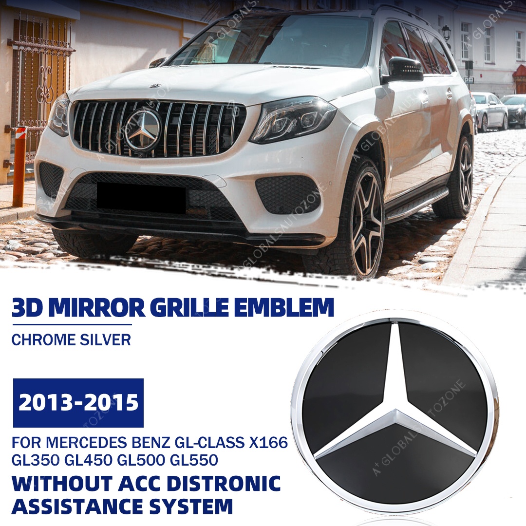 Chrome Silver 3D Mirror Emblem For Mercedes Benz GL-Class X166 2013-2015 GL350 GL450 GL500 GL550 Chrome Benz Grilles Mirror Star Logo Front Bumper Grille Badge