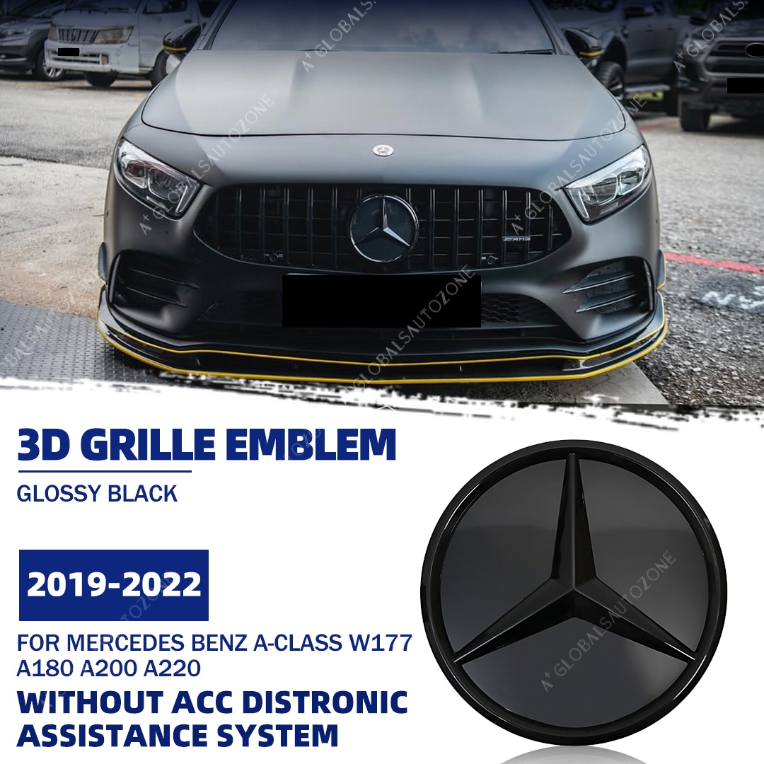 Glossy Black 3D Emblem For Mercedes Benz A-Class W177 2019-2022 A180 A200 A220 Shiny Black Benz Grilles 3D Star Logo Front Racing Grille Badge