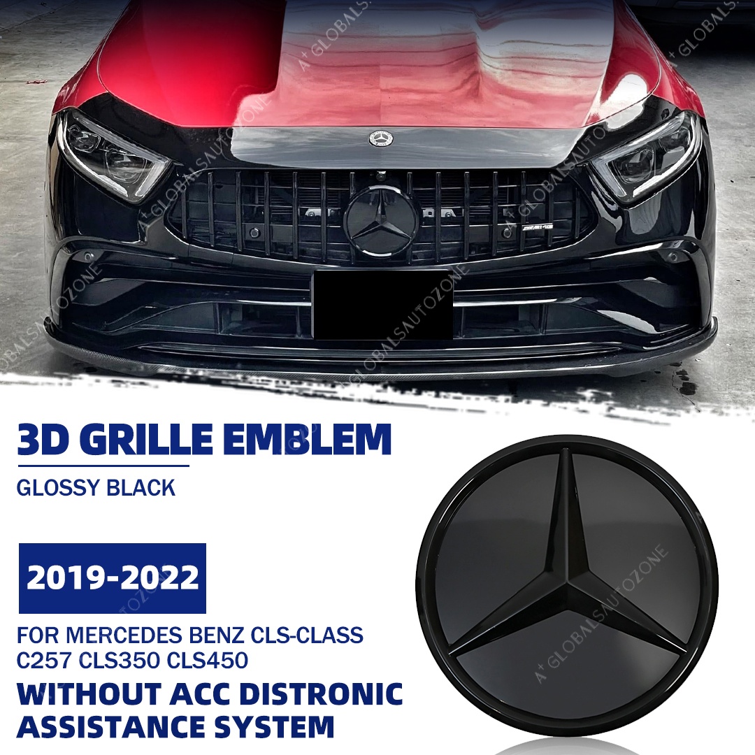 Glossy Black 3D Emblem For Mercedes Benz CLS-Class C257 2019-2022 CLS350 CLS450 Shiny Black Benz Grilles 3D Star Logo Front Bumper Grille Badge