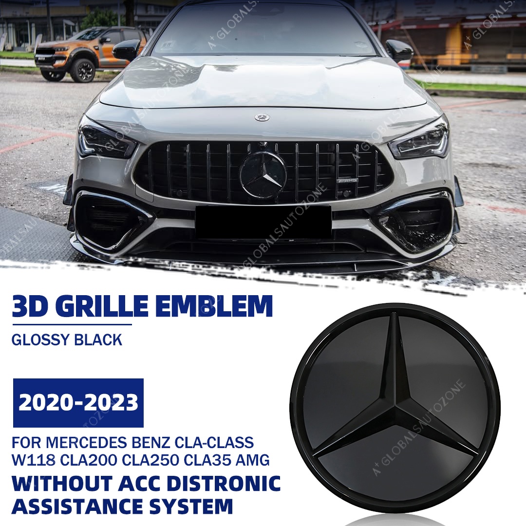 Glossy Black 3D Emblem For Mercedes Benz CLA-Class W118 2020-2023 CLA200 CLA250 CLA35 AMG Shiny Black Benz Grilles 3D Star Logo Front Racing Grille Badge