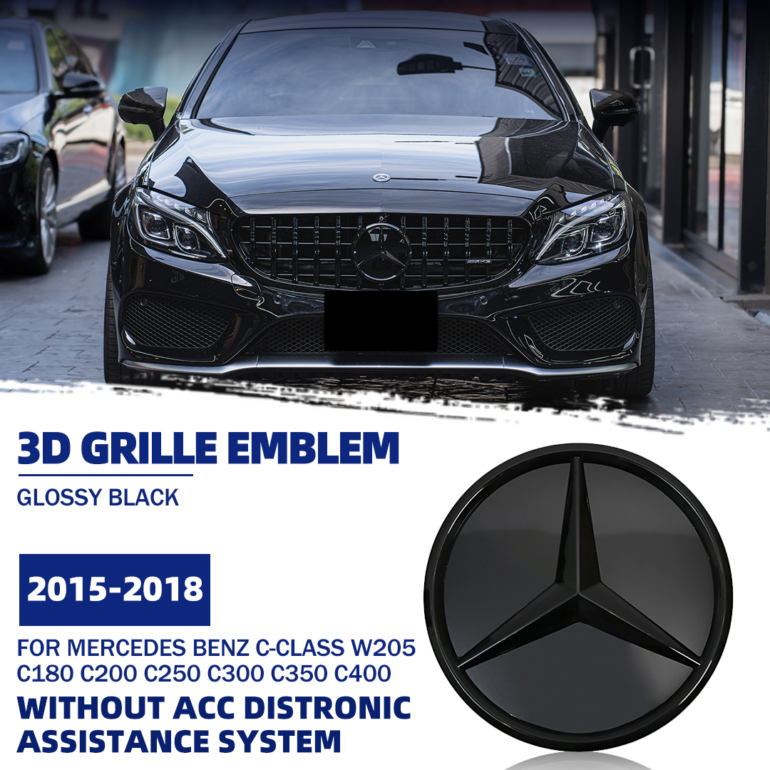 Glossy Black 3D Emblem For Mercedes Benz C-Class W205 2015-2018 C180 C200 C250 C300 C350 C400 Shiny Black Benz Grilles 3D Star Logo Front Bumper Grille Badge