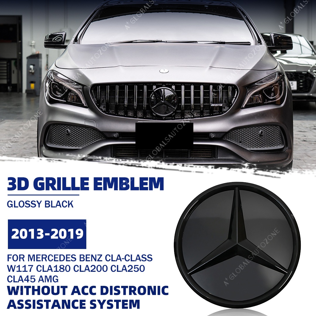 Glossy Black 3D Emblem For Mercedes Benz CLA-Class W117 2013-2019 CLA180 CLA200 CLA250 CLA45 AMG Shiny Black Benz Grilles 3D Star Logo Front Bumper Grille Badge