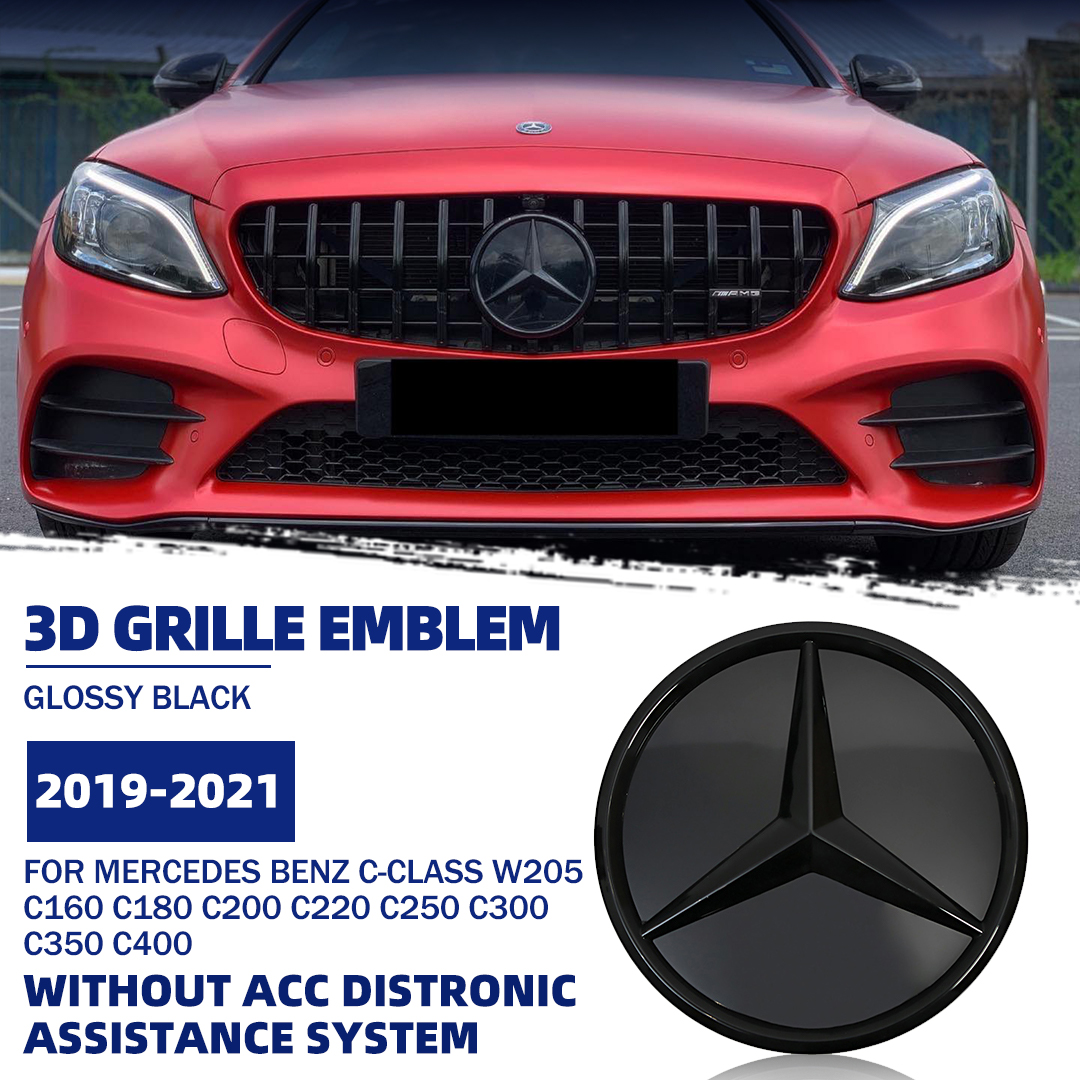 Glossy Black 3D Emblem For Mercedes Benz C-Class W205 2019-2021 C160 C180 C200 C220 C250 C300 C350 C400 Shiny Black Benz Grilles 3D Star Logo Front Bumper Grille Badge