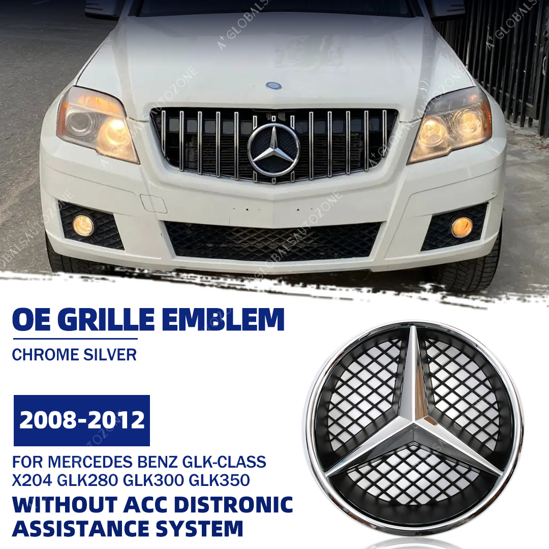 Chrome Silver Front Racing Grille Emblems For Mercedes Benz GLK-Class X204 2008-2012 GLK280 GLK300 GLK350 Chrome Benz Grilles Star Logo OE Badge