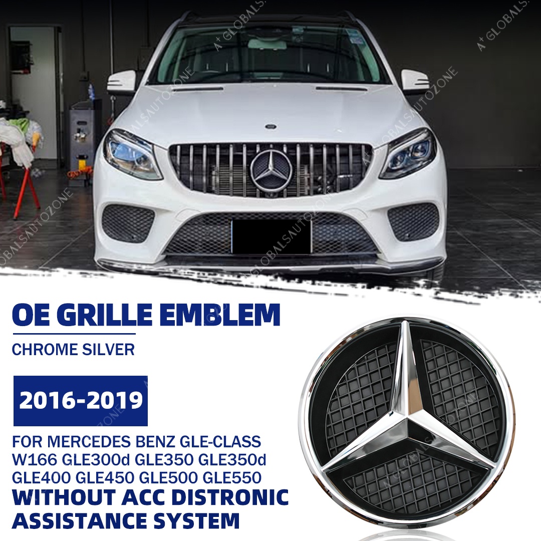 Chrome Silver Front Racing Grille Emblems For Mercedes Benz GLE-Class W166 2016-2019 GLE300d GLE350 GLE350d GLE400 GLE450 GLE500 GLE550 Chrome Benz Grilles Star Logo OE Badge