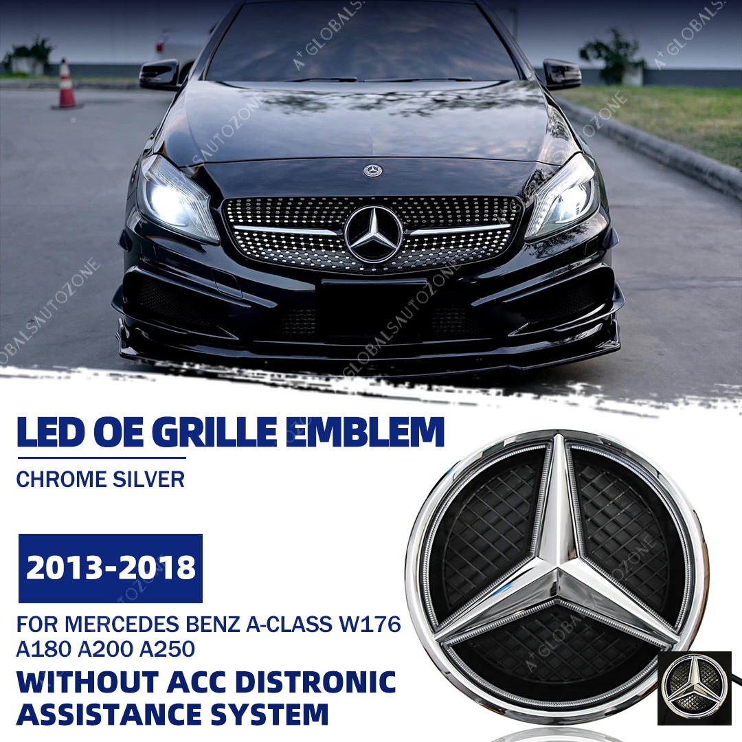Chrome Silver Front Bumper LED Grille Lights Emblems For Mercedes Benz A-Class W176 2013-2018 A180 A200 A250 Chrome Silver Illuminated Benz Grilles Star Logo Badge
