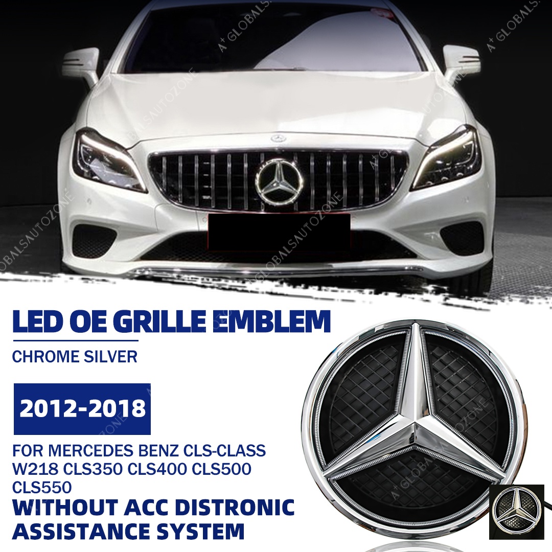 Chrome Silver Front Bumper LED Grille Lights Emblems For Mercedes Benz CLS-Class W218 C218 X218 2012-2014 CLS350 CLS400 CLS500 CLS550 Chrome Silver Illuminated Benz Grilles Star Logo Badge