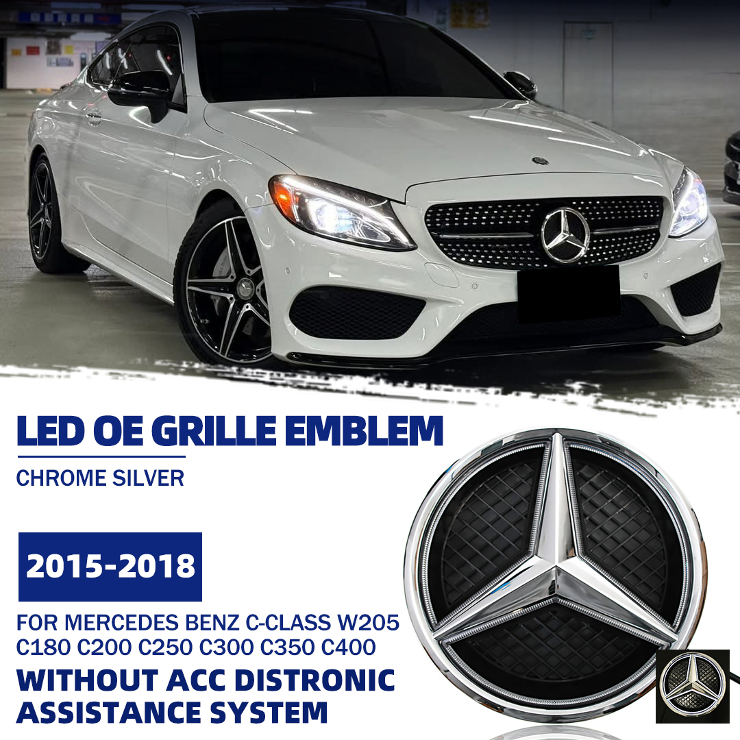 Chrome Silver Front Bumper LED Grille Lights Emblems For Mercedes Benz C-Class W205 2015-2018 C180 C200 C250 C300 C350 C400 Chrome Silver Illuminated Benz Grilles Star Logo Badge