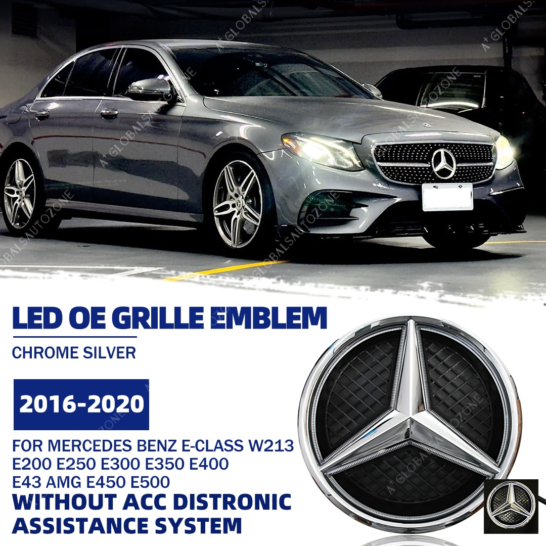 Chrome Silver Front Bumper LED Grille Lights Emblems For Mercedes Benz W213 2016-2020 E200 E250 E300 E350 E400 E43 AMG E450 E500 Chrome Silver Illuminated Benz Grilles Star Logo Badge