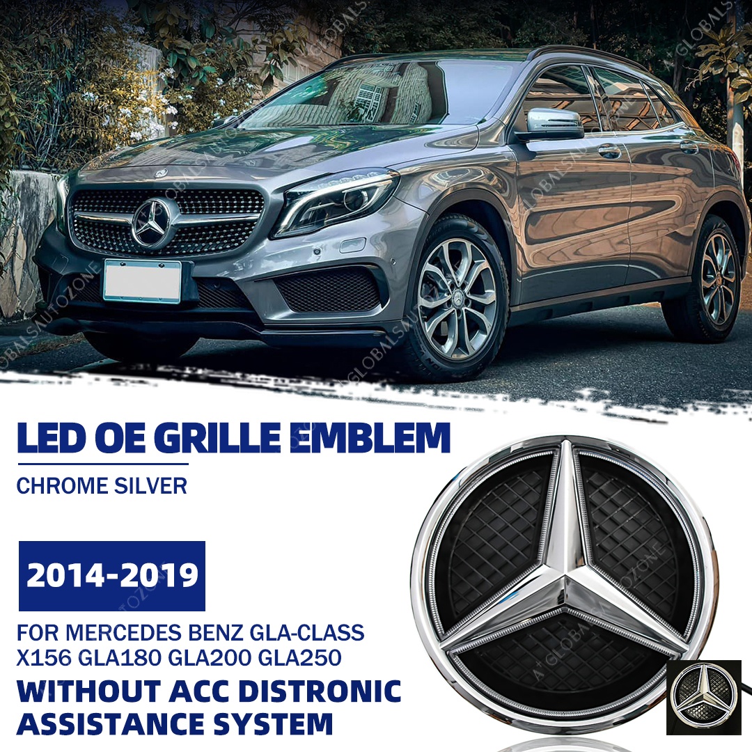Chrome Silver Front Bumper LED Grille Lights Emblems For Mercedes Benz GLA-Class X156 2014-2019 GLA180 GLA200 GLA250 Chrome Silver Illuminated Benz Grilles Star Logo Badge