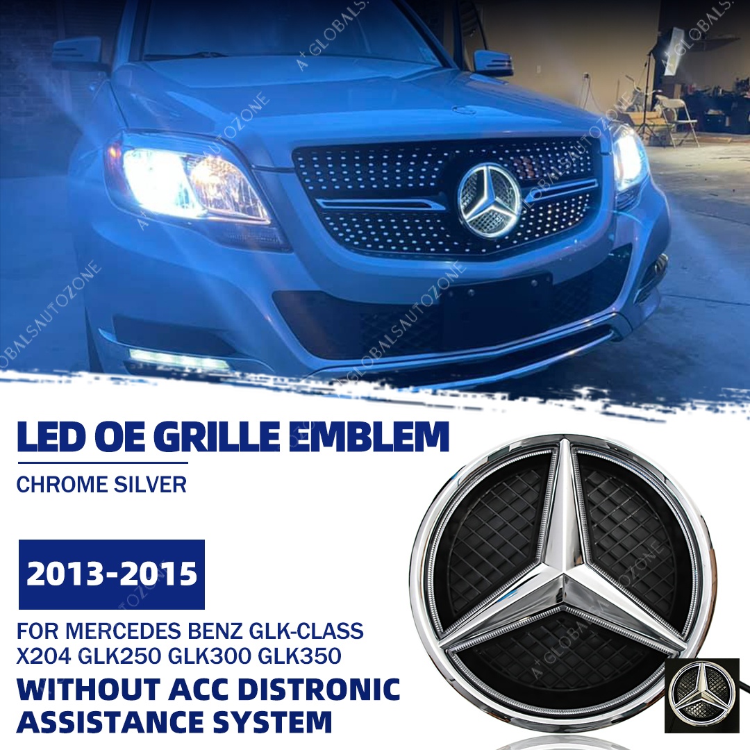 Chrome Silver Front Bumper LED Grille Lights Emblems For Mercedes Benz GLK-Class X204 2013-2015 GLK250 GLK300 GLK350 Chrome Silver Illuminated Benz Grilles Star Logo Badge