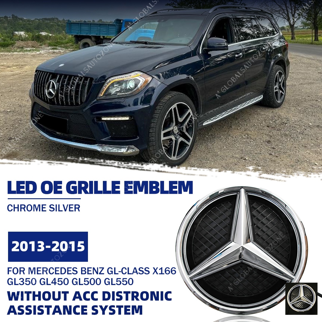 Chrome Silver Front Bumper LED Grille Lights Emblems For Mercedes Benz GL-Class X166 2013-2015 GL350 GL450 GL500 GL550 Chrome Silver Illuminated Benz Grilles Star Logo Badge