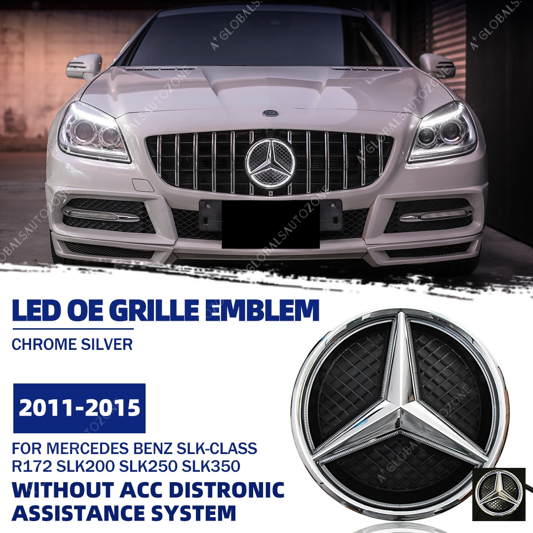 Chrome Silver Front Bumper LED Grille Lights Emblems For Mercedes Benz SLK-Class R172 2011-2015 SLK200 SLK250 SLK350 Chrome Silver Illuminated Benz Grilles Star Logo Badge